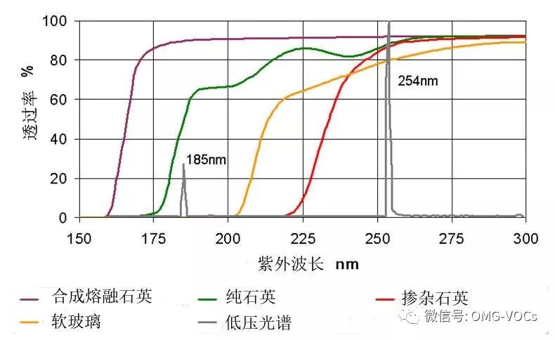 通过对比185nm和254nm的透过率,灯管材质一般选合成石英。